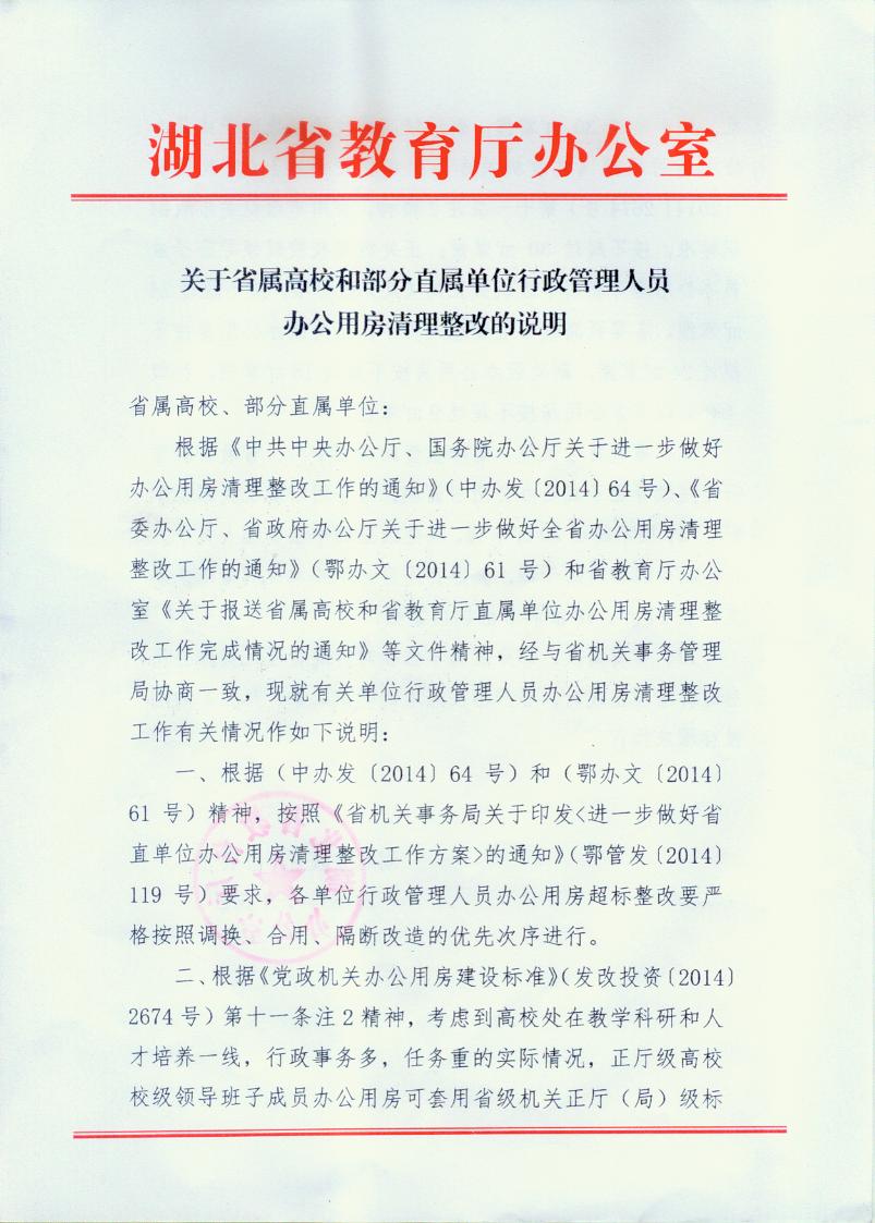 湖北省教育厅关于省属高校和部分直属行政管理人员办公面积清理整改的说明