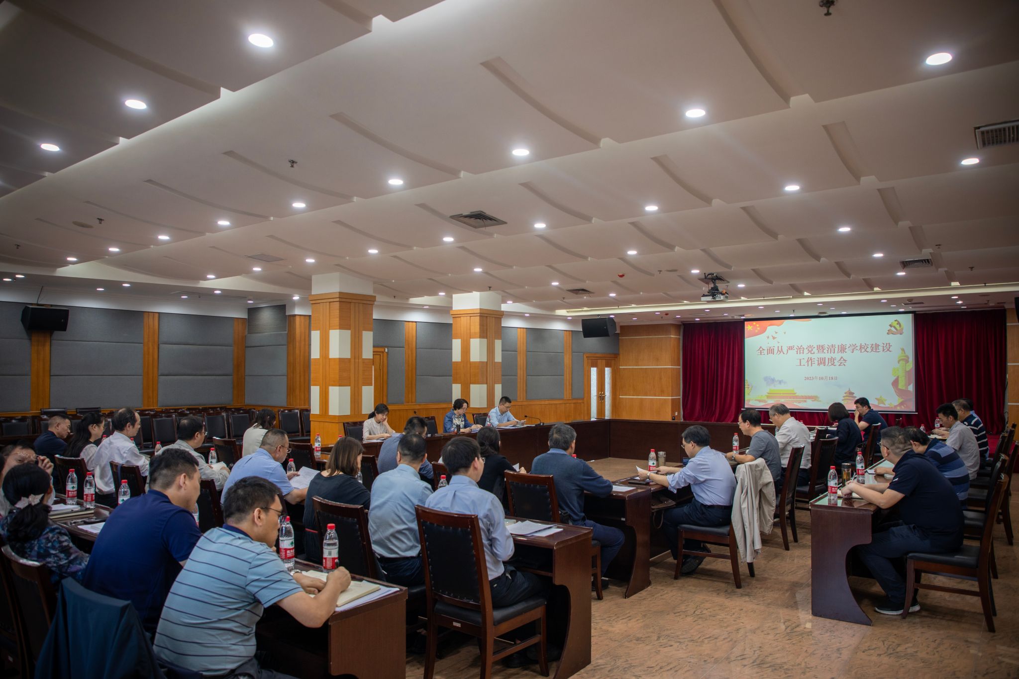 10月18日,我校召开2023年全面从严治党暨清廉学校建设工作调度会,深入学习习近平总书记重要讲话精神及重要会议精神。校党委常委、纪委书记、监察专员窦先萍主持会议并讲话,二级党组织书记,全体专职纪检监察干部参加了会议。