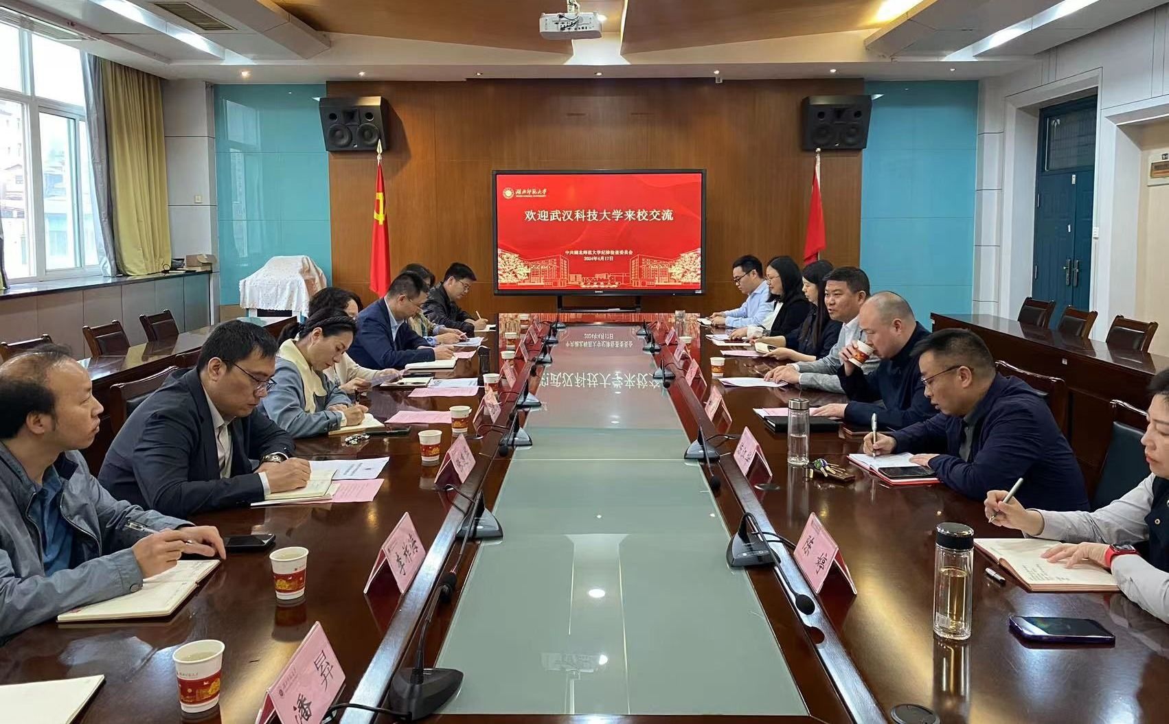 3月20日,黄冈师范学院纪委书记、监察专员胡娟主持交流座谈会,对我校窦先萍一行到访表示欢迎,介绍了学校纪检监察工作总体情况,表示期待两校有更多交流机会,不断推动高校纪检监察工作高质量发展。