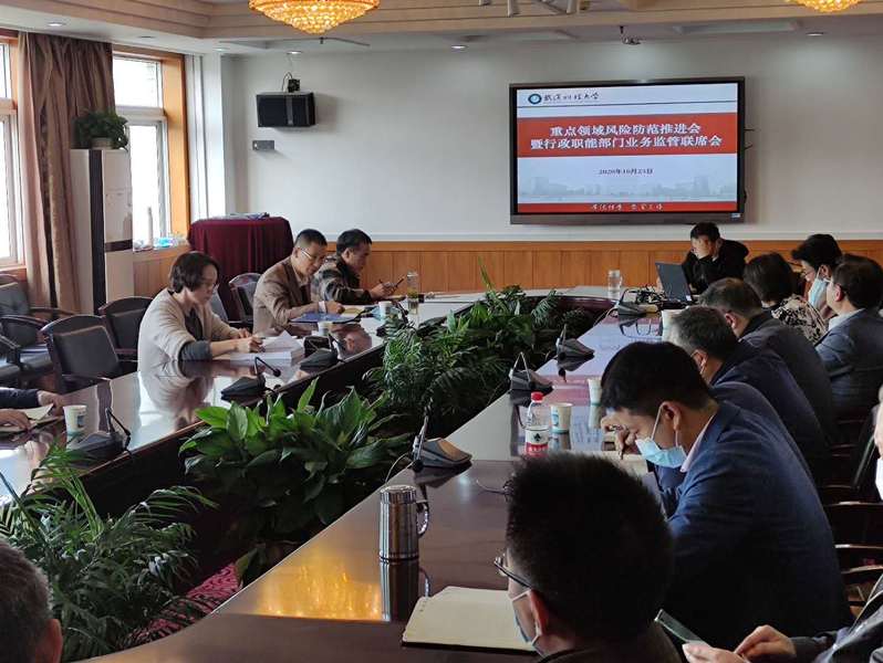 为完善以党内监督为主导的校内监督体系,强化职能部门监督、监管责任,推动各类监督有机贯通、相互协调,探索一体推进、同向发力的监督工作体系。同时,也为了强化对权力运行的监督制约,精准查找腐败风险点、防范廉政风险,关爱和保护干部,巩固提升学校良好政治生态,学校纪委、监察专员办不断完善党委职能部门党内监督联席会议和行政职能部门业务监管联席会议制度等监督工作机制,持续推进再监督工作,继2020年6月下旬召开了党委职能部门参加的党内监督联席会议之后,2020年10月23 日下午3:00在主楼1610会议室,学校纪委、监察专员办专门召开了重点领域风险防范推进会暨行政职能部门业务监管联席会。