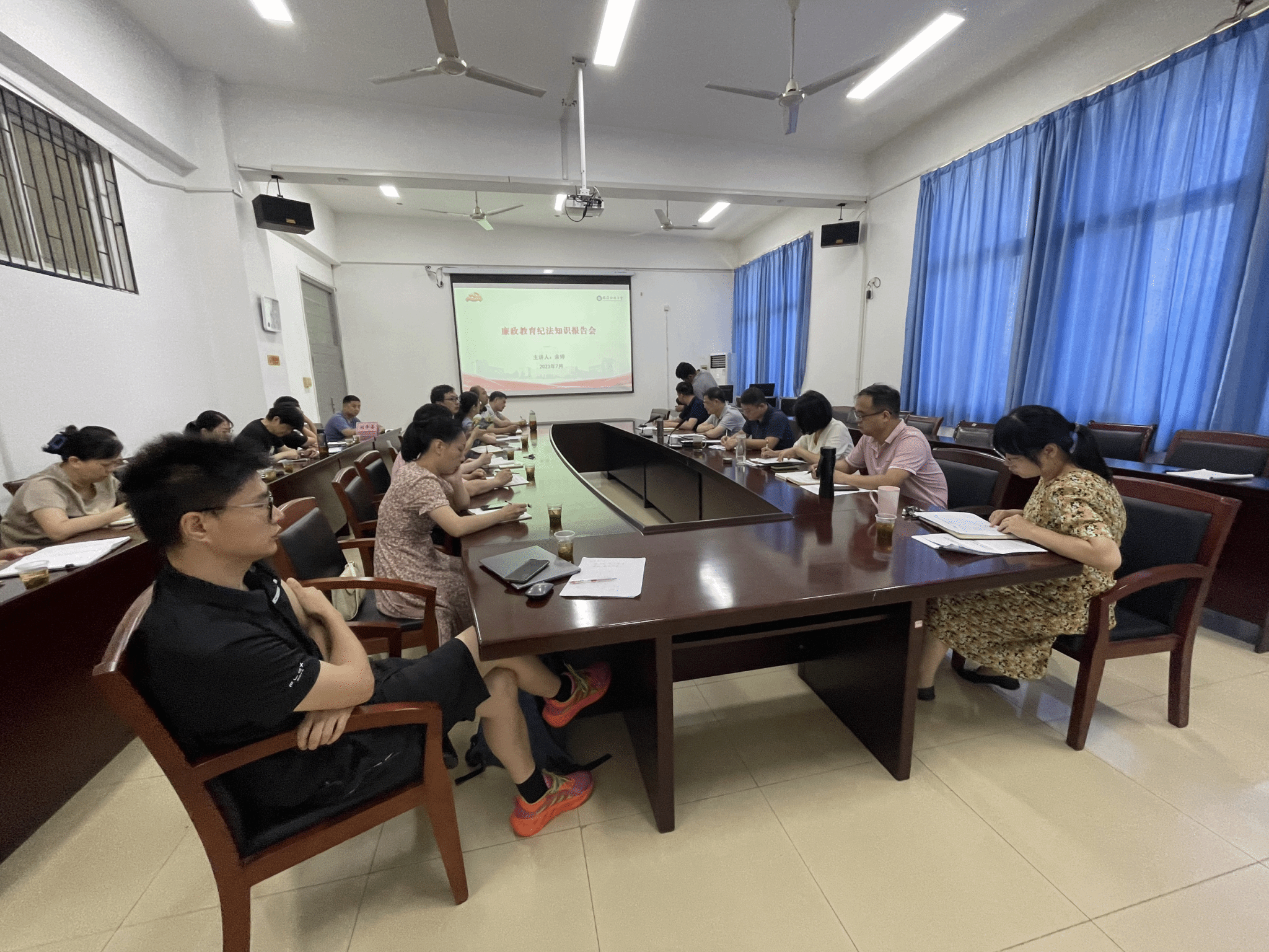 (通讯员戴乐)7月6日,我院党委召开廉政警示教育大会,院领导班子成员、各党支部老师集体观看廉政警示教育片、感受廉洁教育、学习纪法知识、筑牢廉洁防线。本次会议由党委书记刘泽喜主持。