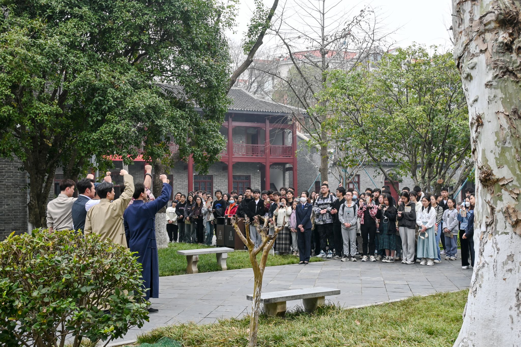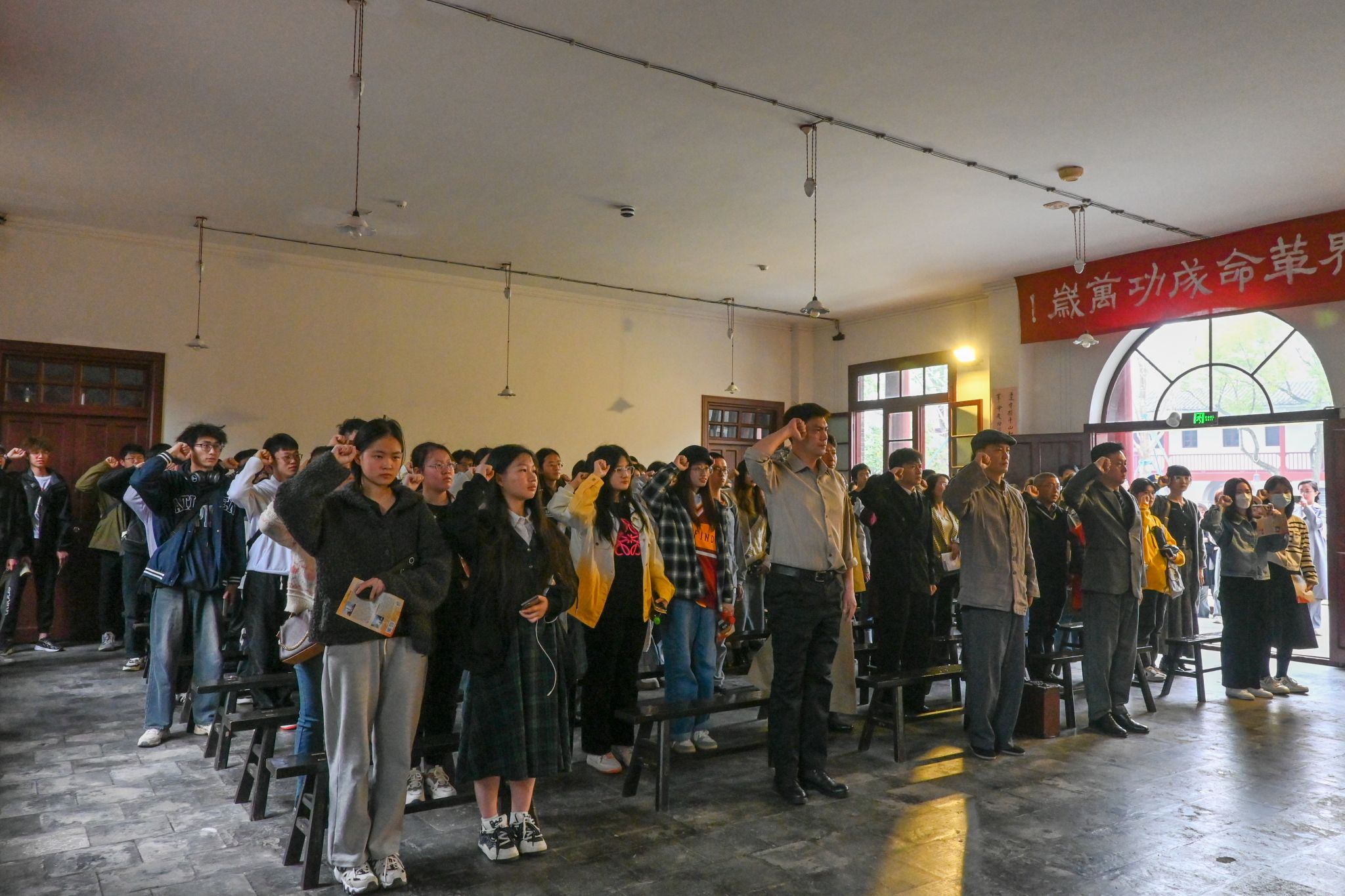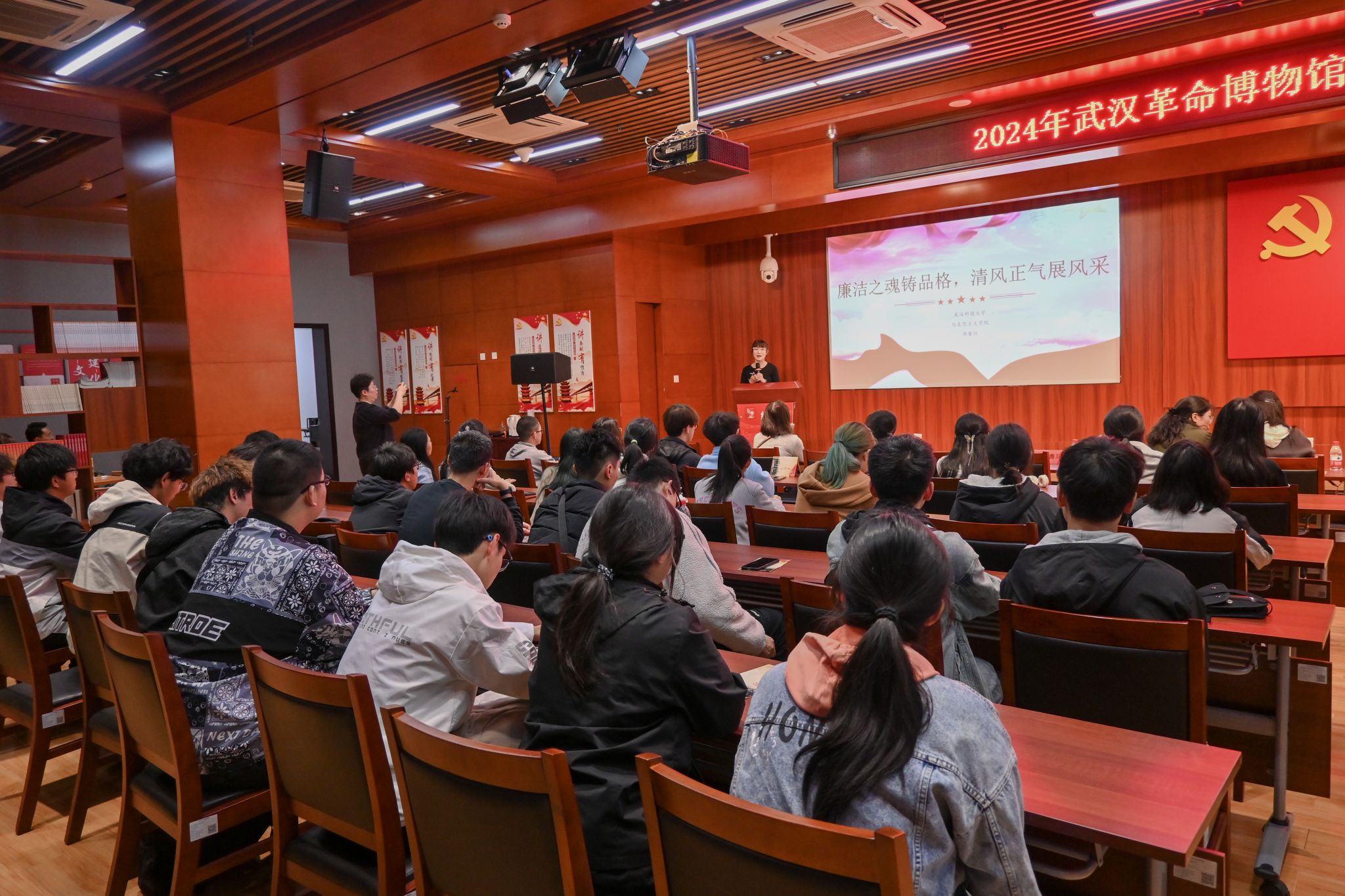 进入中共五大会址,学生们体验了沉浸式思政课《监委主席王荷波》。在场学生在讲解员带领与演员的指引下,一起“回到”1927年,共同回顾了中央监察委员会首任主席王荷波的英勇事迹,感受到革命先烈和纪检人为人民解放事业和纪检监察事业牺牲奉献的品德和精神。