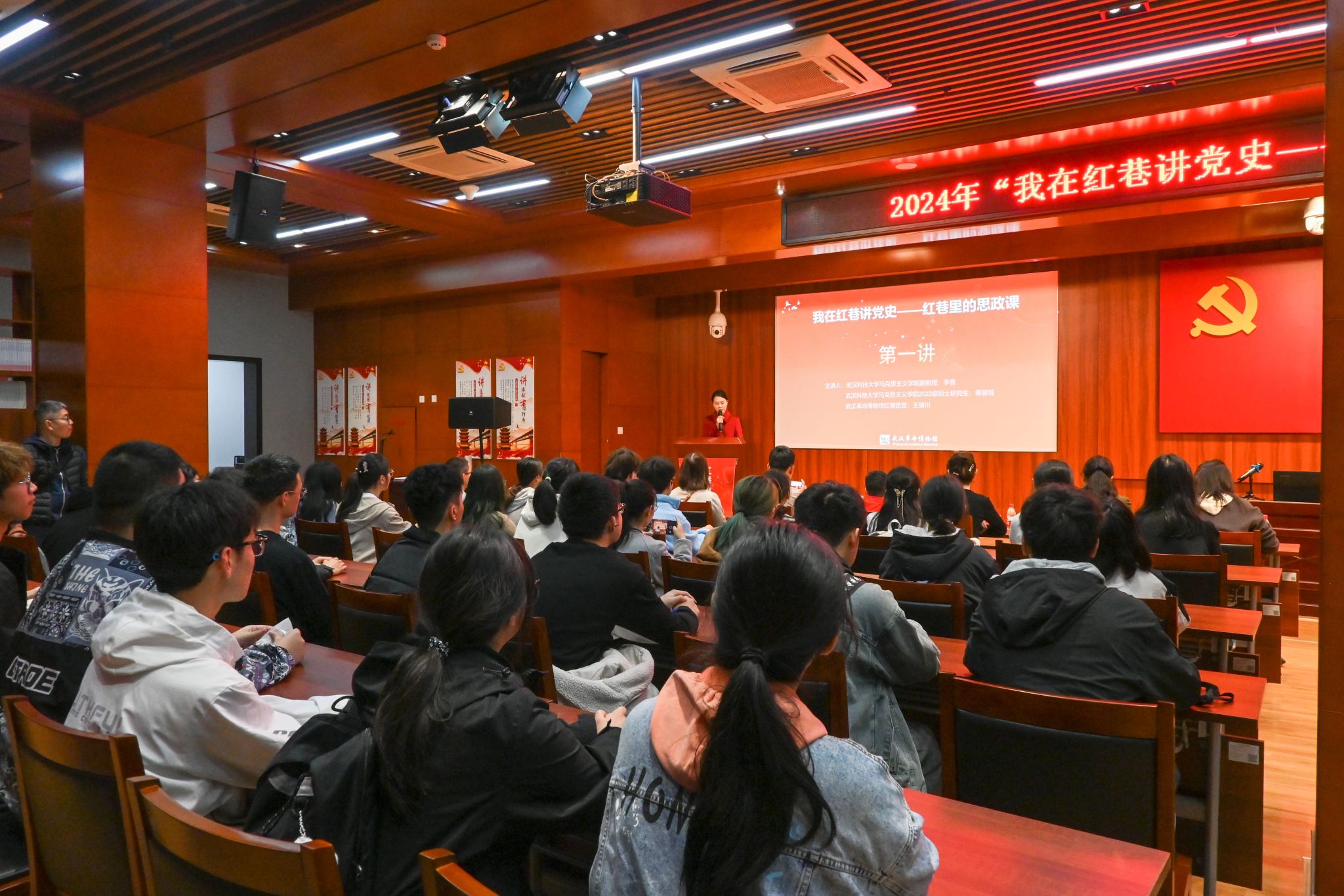 习近平总书记在学校思想政治理论课教师座谈会上强调“推动思想政治理论课改革创新,要不断增强思政课的思想性、理论性和亲和力、针对性”。“红巷里的思政课”作为武汉革命博物馆的品牌活动,既是我校与武汉革命博物馆共建大思政课实践教学基地的重要载体,也是助推大中小学思政课一体化建设,联合武昌高校马克思主义学院联盟创新打造的教育实践项目。2024年,我校将继续携手武汉革命博物馆,在开展理论宣讲的基础上,不断丰富活动形式与内容,提供学党史、促交流的思政大平台,让更多的社会群体感受思政课的魅力。