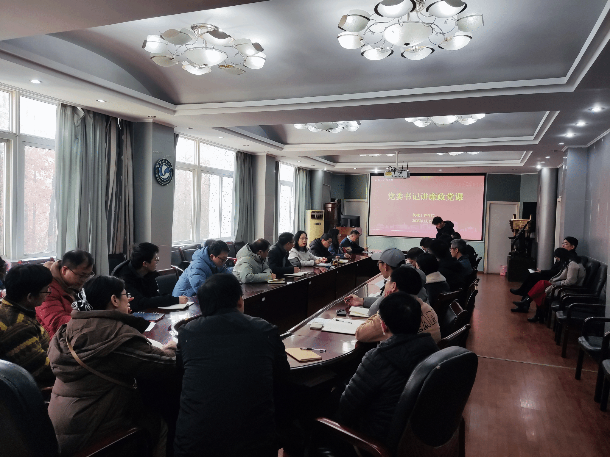为加强党风廉政建设,提高教职工清正廉洁意识,2025年1月2日,机械工程学院党委书记讲廉政党课暨2024年重大科研设备购置项目廉洁承诺书签订仪式在教一楼415顺利举办。本次活动由党委副书记、纪委书记瞿孝平主持,学院党委书记李婵娟、执行院长汪朝晖等领导班子全体成员、教师代表共计30余人参加了此次活动。