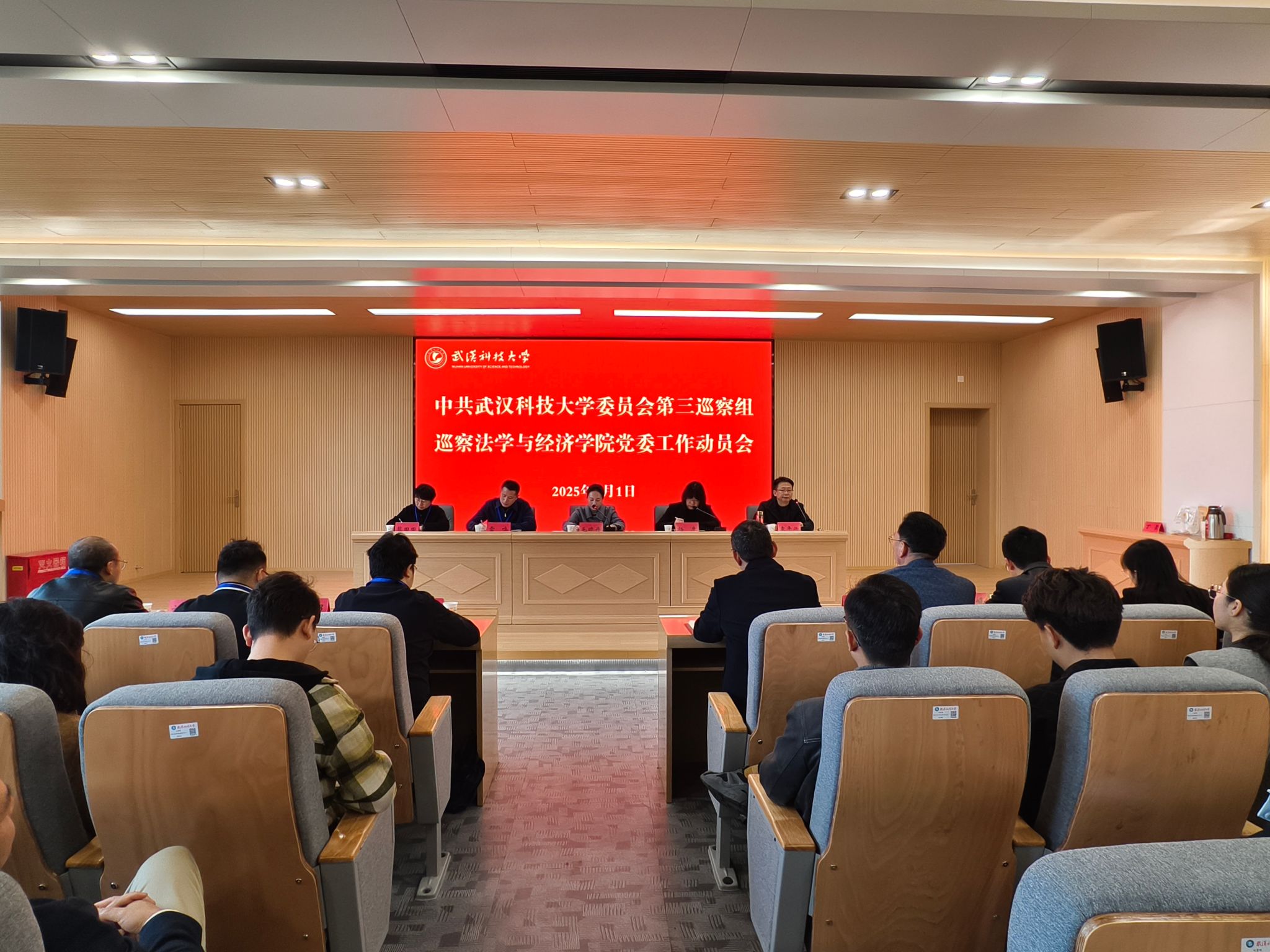 根据学校党委统一部署,4月1日上午,中共武汉科技大学委员会第三巡察组巡察法学与经济学院党委工作动员会在黄家湖校区教四楼41302报告厅召开。校党委第三巡察组组长毛晓丹出席并作动员讲话,法学与经济学院党委书记杨彦作表态发言。校党委第三巡察组副组长雷鸣、熊田田,第三巡察组全体成员,法学与经济学院领导班子成员参加会议,学院科级以上干部、系部主任、党支部书记、教师代表及学生代表列席会议。大会由学院院长袁年兴主持。