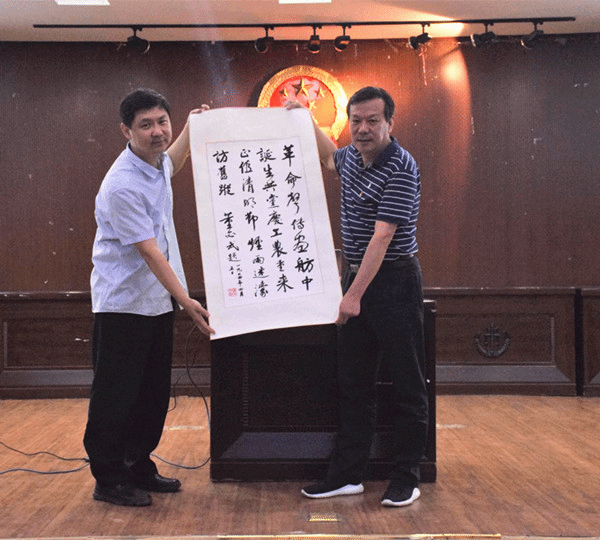 报告会后,董绍壬向我校赠送了董必武革命诗复刻版《清明节游嘉兴南湖烟雨楼》书法作品。全诗表达了对共产党的热爱,传达了bevictor伟德官网为人民谋幸福的神圣职责和崇高使命。